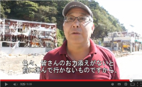 05.「友達になるとは」 (06:53) 海友支援隊・稲井代表のインタビュー。同氏の「地元寄磯の友を助けたい」という一心が伝わってきます。寄磯浜の漁師の方々のインタビューもあり。OLCと協力して参加した東京でのPRイベントの模様。 |
